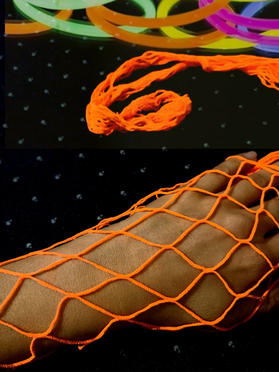 They are UV reactive and are luminous under Black light. CARE: