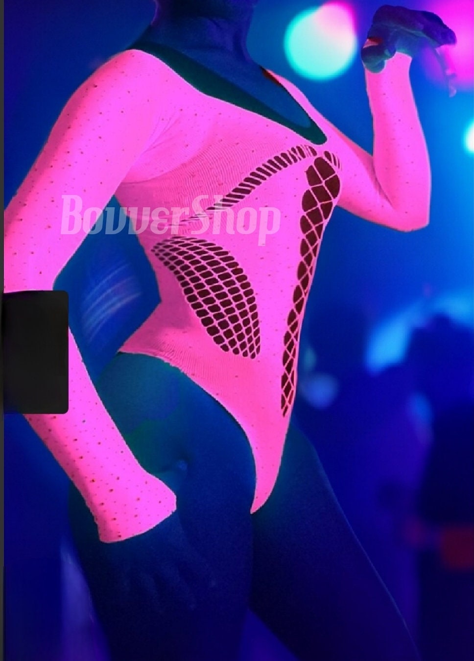 Stretch Bodysuit Size: One size fits most XS to L … BUT will not work for plus size or taller people.