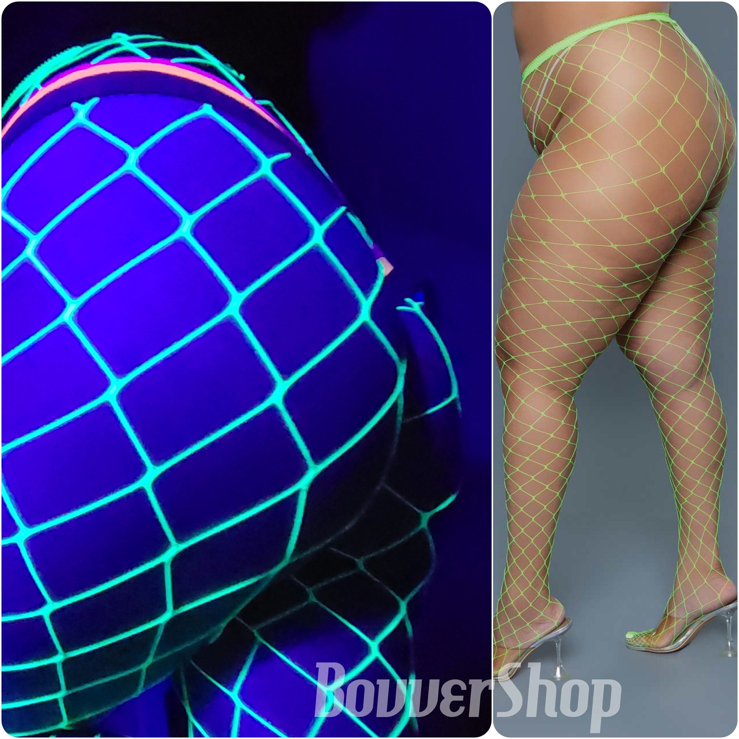 Get ready to turn heads with our HOT, Totally-Lit Neon Green, Fishnet Tights. Another of out best sellers! These UV Blacklight Reactive Mesh tights are perfect for any rave or festival outfit. Stand out and shine bright under the lights. One Size Plus: Fits most under 200 lbs